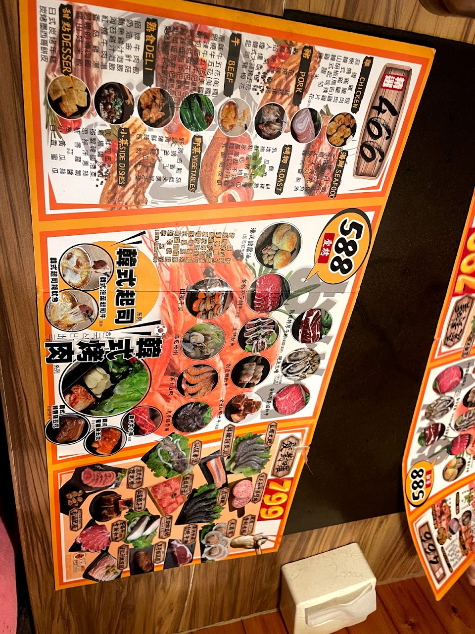 和牛❤️+羊五花+牛小排+牛五花+骰子牛+起司牛+蜜糖豬五花+鹹豬肉+爆卵柳葉魚+蛤蜊湯+棉花糖+烤年糕+烤冰淇淋?~以上必點!