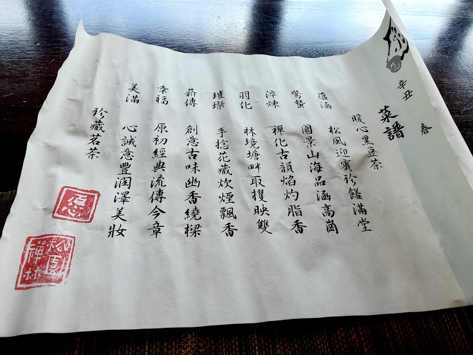 今天因好友的帶領讓我有機會邂逅松園禪林,餐廳整個設計正如其名深富禪意,我們在無訂位的情況下因老闆的特別調度讓我們能入席享用,外面冷颼颼的天氣但老闆的貼心安排卻是暖呼呼的。整個餐點共八道都是別具用心的料理,雖然每道餐點看似份量不大但是全部吃完真的飽到滿溢,希望改次有機會能白天造訪並好好欣賞整個禪林的風貌。