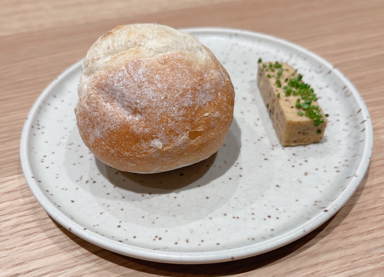 無花果加 Ricotta Cheese 很開胃,算算甜甜帶點奶香,算是個普通的組合。但小圓法+豆豉奶油完全驚艷到我!那個豆豉奶油讓我想對主廚說「幫我打包個 1 瓶帶走。」香濃的奶油帶點豆豉醬油鹹香的滋味,抹在麵包上以前的我真的可以吃五個沒問題誒(現在可能沒辦法XD)