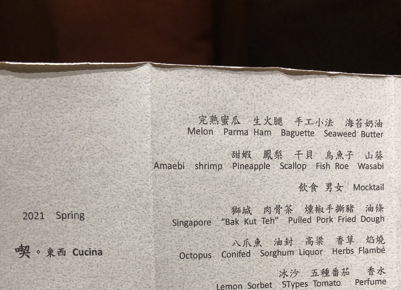 喫東西 Cucina 是間主打西式的料理手法,同時結合了東西方的食材的無菜單套餐的餐廳