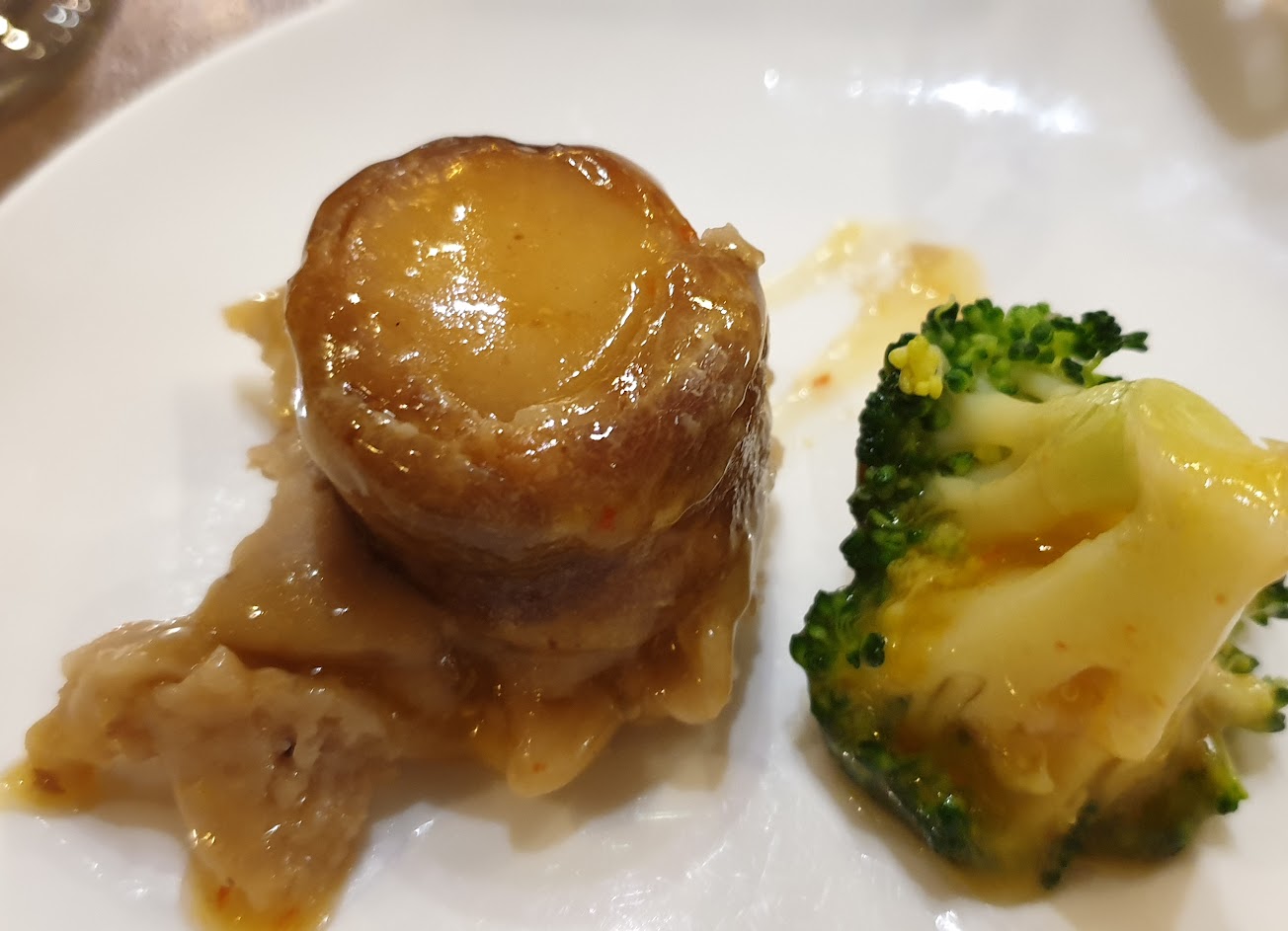 創造幸福的地方,應該要給五顆星。 很多親朋好友都在這裡結婚。停車場其實不夠停,但是可以把車子停在故宮博物院對面的公立停車場,走過來也是方便。 今天的菜色介紹如下: 帆立貝蔬果沙拉-很清爽,沒什麼負擔。 花膠魚翅南瓜盅-很奇特的組合,還是傳統的比較習慣。 大蒜醬汁蒸粿條-美味可口。 奇醬北海道干貝-味道不錯。 堅果杏仁肋上排-口味偏甜但是好吃! 泰皇七彩米香魚-今天最棒的一道菜,清爽美味。 雪蓮精燉金鳳凰-清淡的雞湯。 XO醬干貝米糕-不膩口感分明。 帶點石斑蒸鮮露 繽紛四季水果盤 服務員打包的速度非常勤快,這樣桌面也很乾淨。
