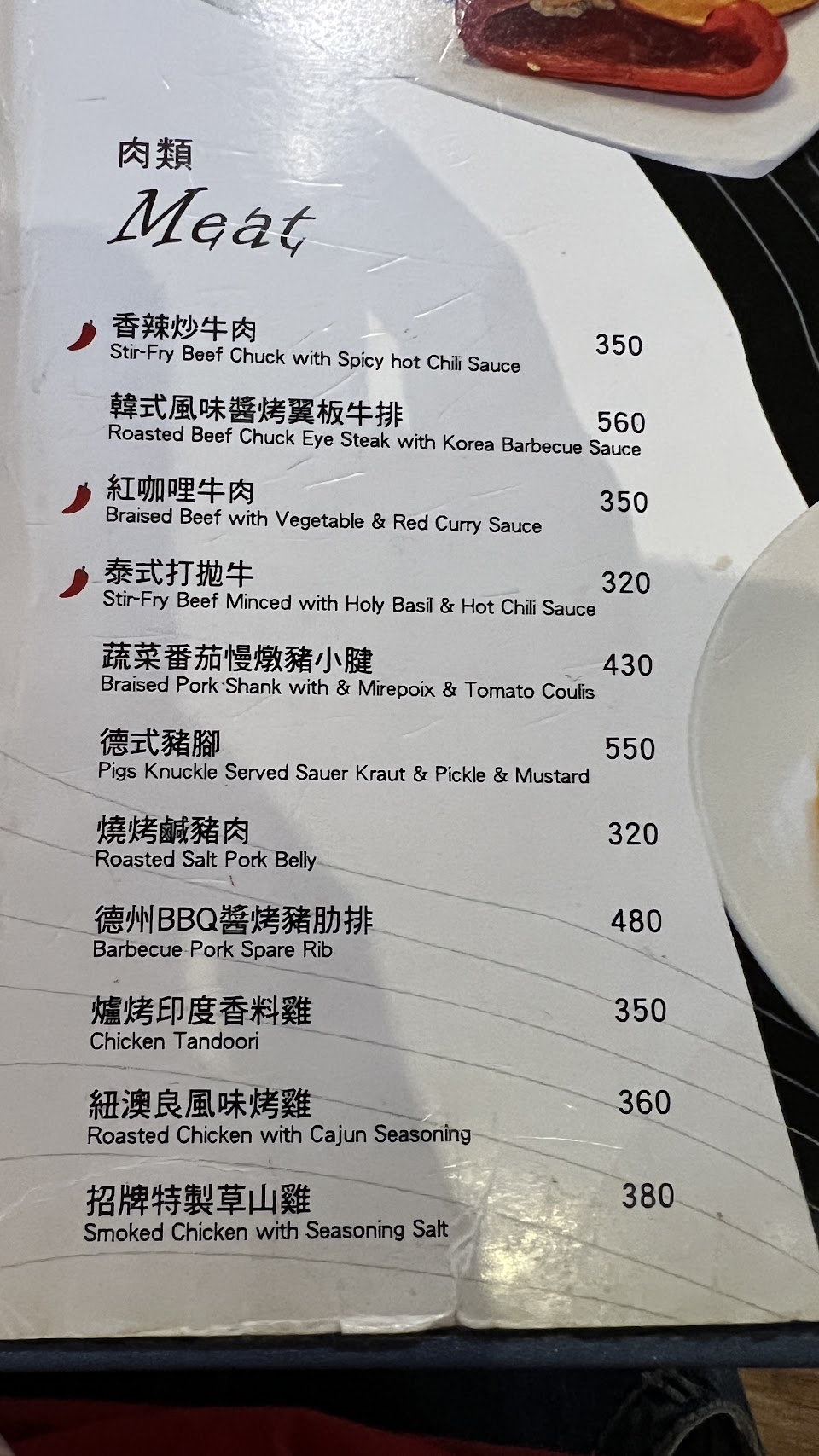 食材內容有玉米、南瓜、彩椒、鴻喜菇、香菇及幾樣青菜,烤完後淋上義大利陳醋醬,味道清淡幽雅,烤過的菇類則乾燥而無味讓我自己以為是羊駝。