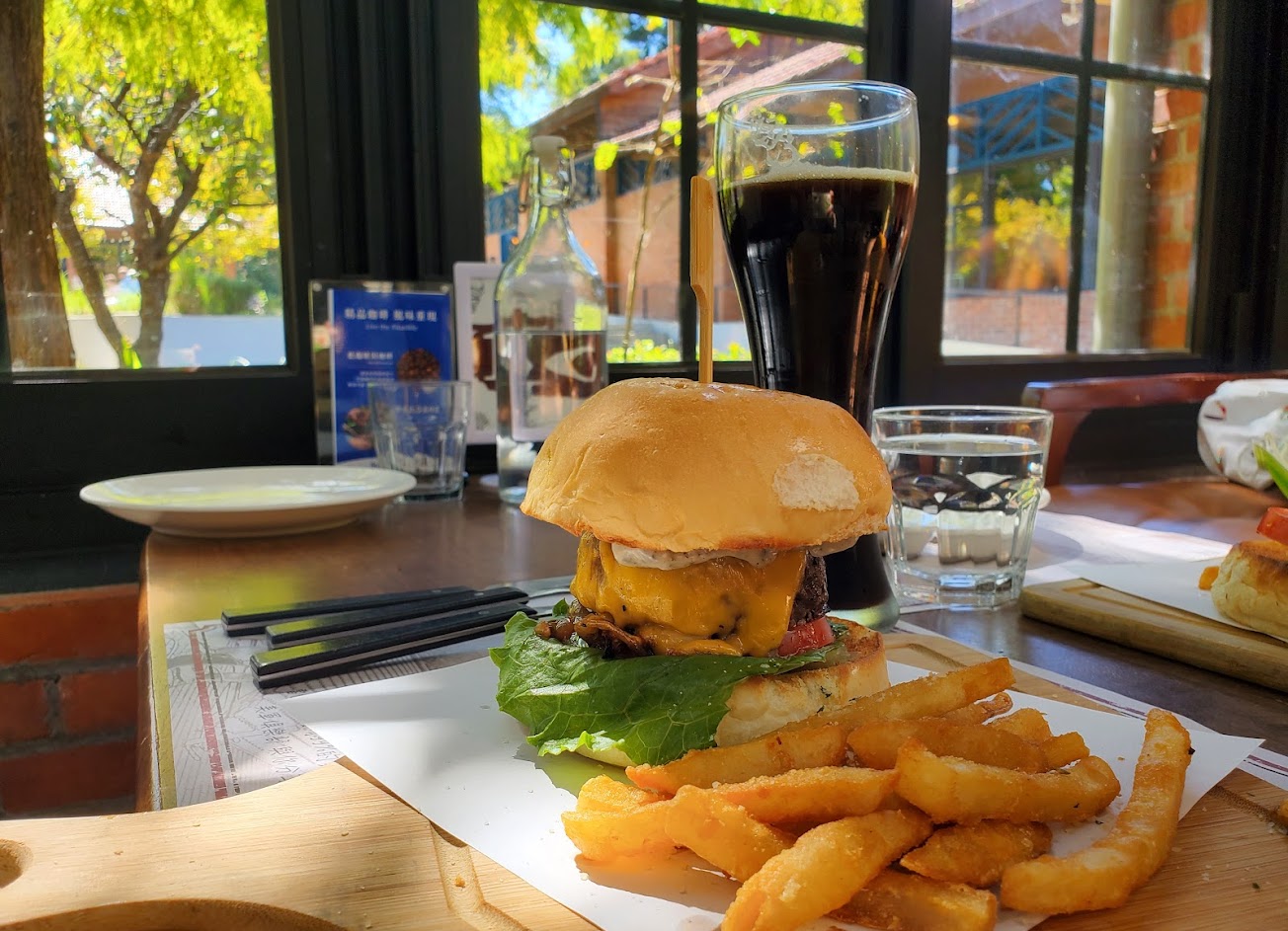 來到有歴史有故事的美軍俱樂部,空間寬敞美式鄉村風格,松露和牛漢堡不錯吃,配黑啤就不必了,蒙布朗栗子蛋糕份量足,點杯咖啡,曬曬太陽,可以消磨ㄧ下午