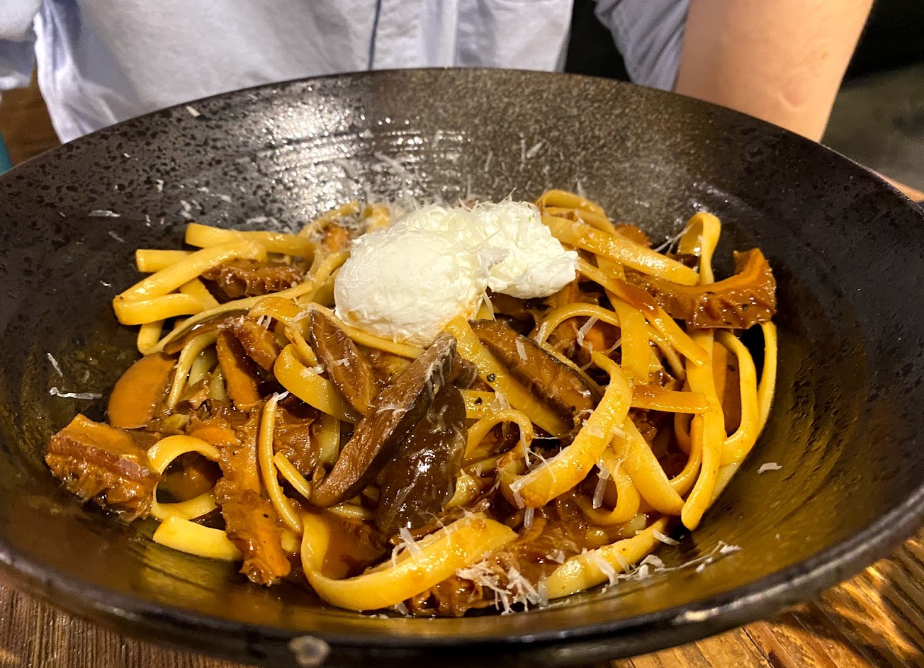 是一間用料很實在的餐廳,松露蕈菇燉飯是我看過最菇的燉飯,加了炸昆布口感很特別,非常好吃!老奶奶司康,一上桌就香氣逼人,外皮烤的很脆,裡面蛋糕體卻依然濕潤,搭配蜂蜜和奶油很讚,升級成早餐套餐的馬鈴薯炒洋蔥也很好吃,還點了紅酒醬燒牛肚麵,寬麵厚實口感有點像麵疙瘩,牛肚超多,收汁收的很入味,想再來訪!
