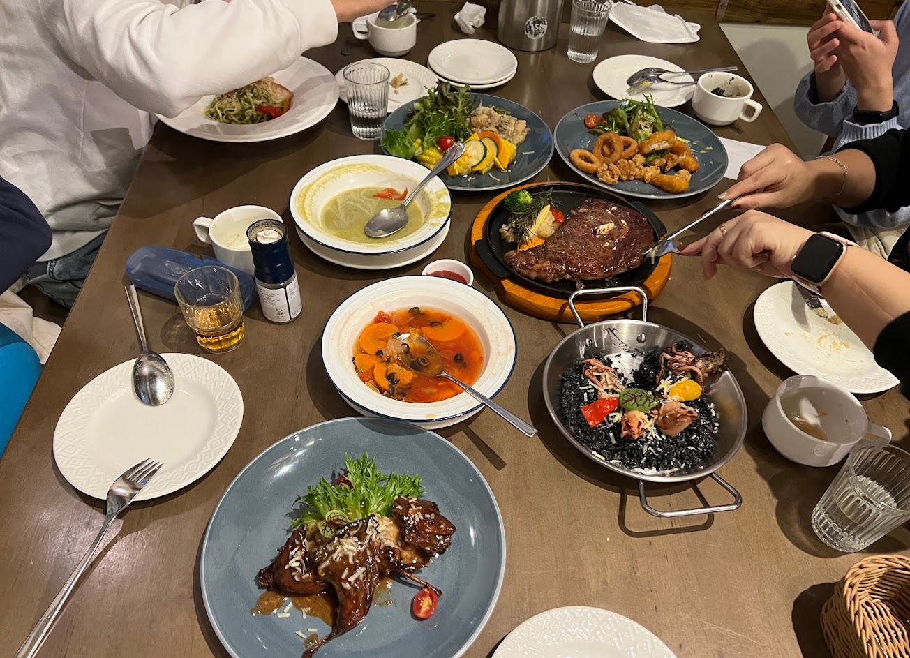 馬友友小時候住的地方,美軍俱樂部隔壁,環境優雅、服務親切,位子跟位子之間間隔夠,挑高建築,讓人坐的很舒適、放鬆,墨魚燉飯好吃,可麗露非常推薦,還有機器人幫忙送餐,價格稍微偏中上!