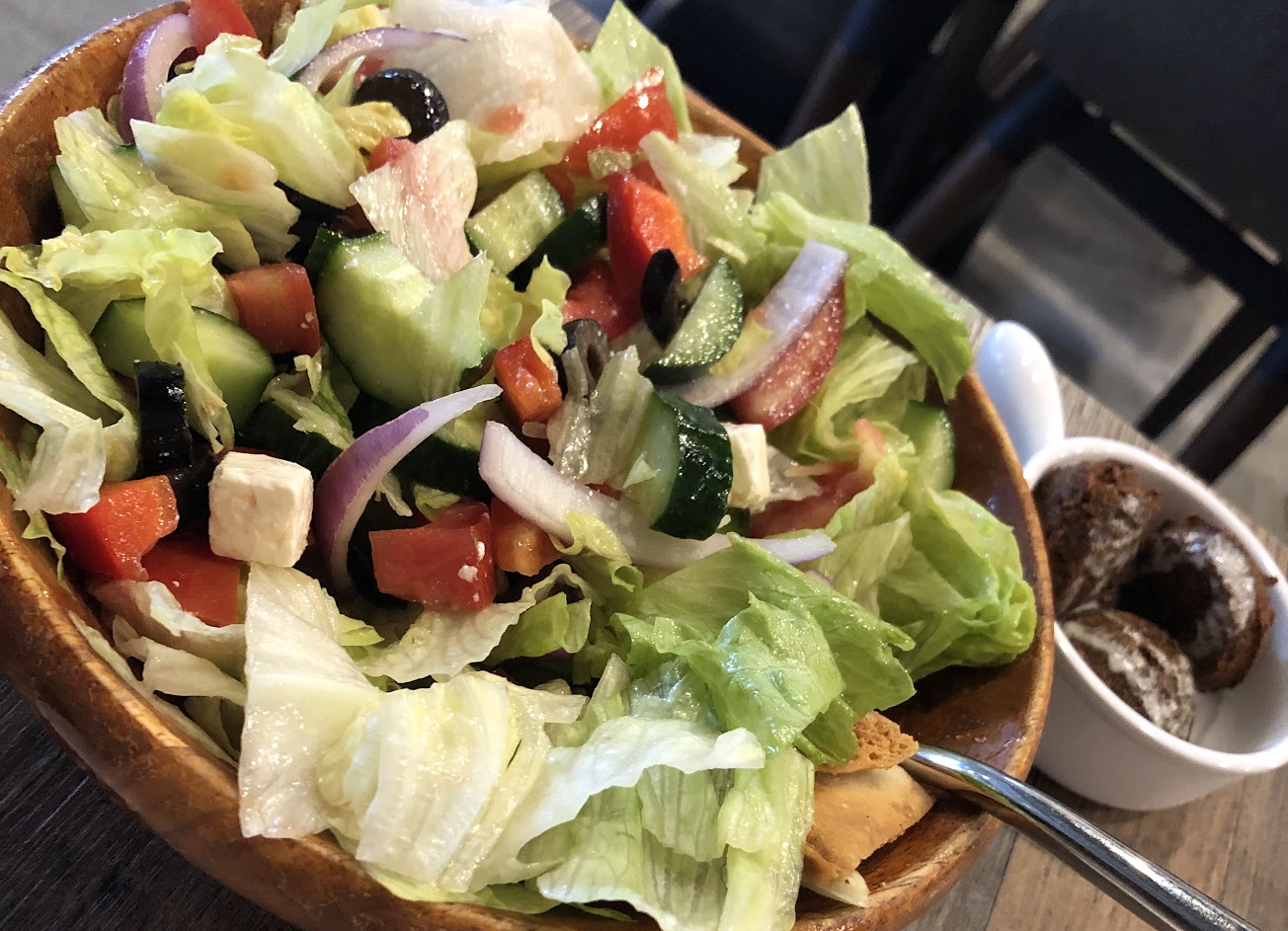 地中海美食不再是遙不可及樂,一家融合希臘與以色列風味的餐廳,店面不大,約6-7張四人桌,但經常用餐時間就吸引了附近居民前往。