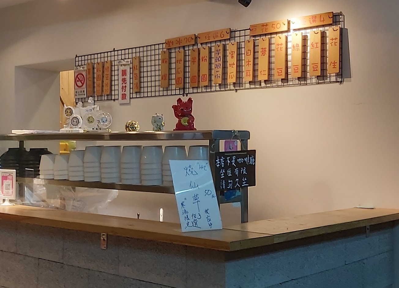 插旗很久的點,今天點了無糖豆漿豆花,配料點了:大豆、花生、芋圓和粉圓,豆漿豆花很ok,但配料沒有太讓人驚艷;另外點了一杯清的燒仙草,沒加任何配料,仍是原價50元一杯,不清楚這樣合不合理…