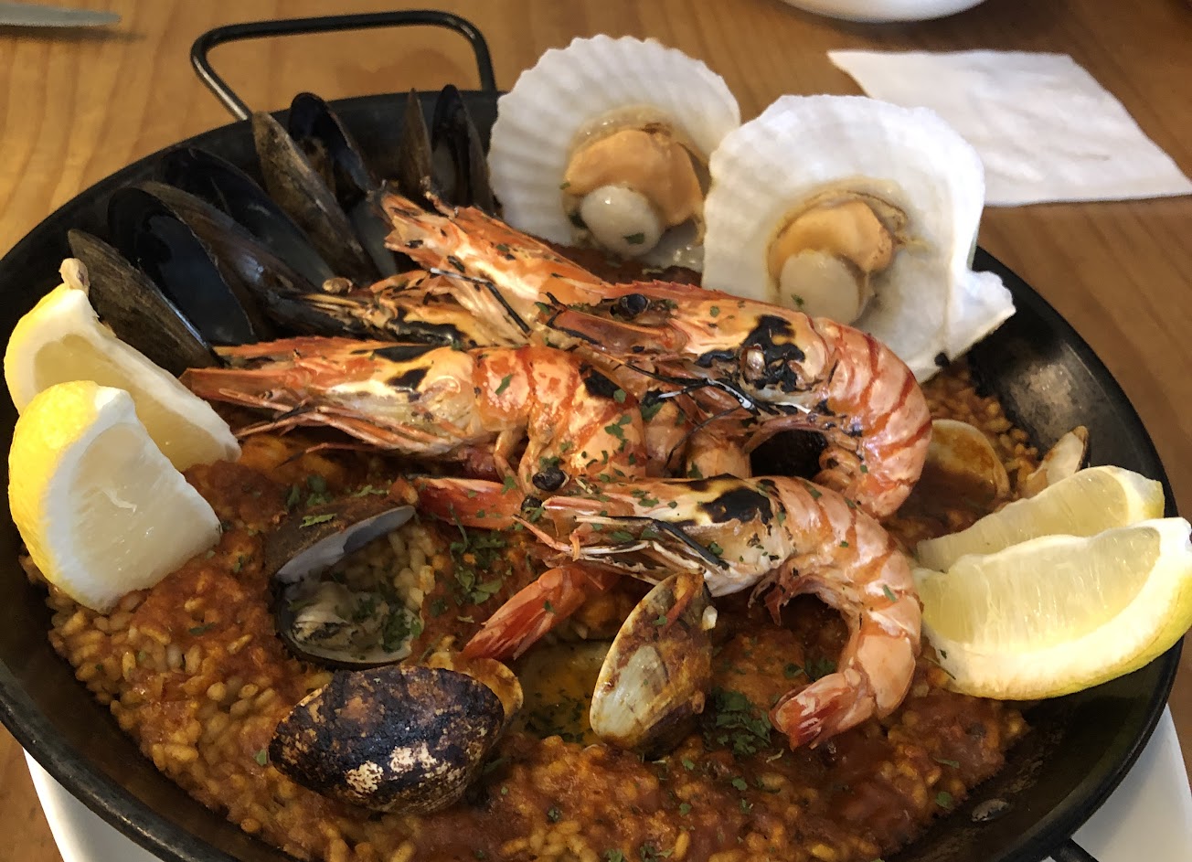 我跟我情人昨日去用餐 點了 蒜香陶盤鮮蝦 馬鈴薯熔岩辣肉醬 臘腸佐麵疙瘩 海鮮烤飯 飲品sangria 甜點(壽星招待) 整體用餐下來餐點都還不錯,兩人吃份量挺足。 蒜香鮮蝦 真的蠻推薦點 非常香、非常好吃。 鈴薯辣肉醬 味道也非常不錯,但”個人”會希望肉醬的味道再柔和一點(例如多加點奶油或是少許牛奶 麵疙瘩 在前兩道熱盤出色的表現下就顯得比較普通,臘肉跟麵疙瘩兩者吃起來沒甚麼化學變化。 海鮮烤飯很好吃,米我很喜歡,份量也很足。 Sangria “個人”認為不要碎的薄荷葉 雖說這樣比較好入味,但個人覺得整個飲品看起來不夠美觀。