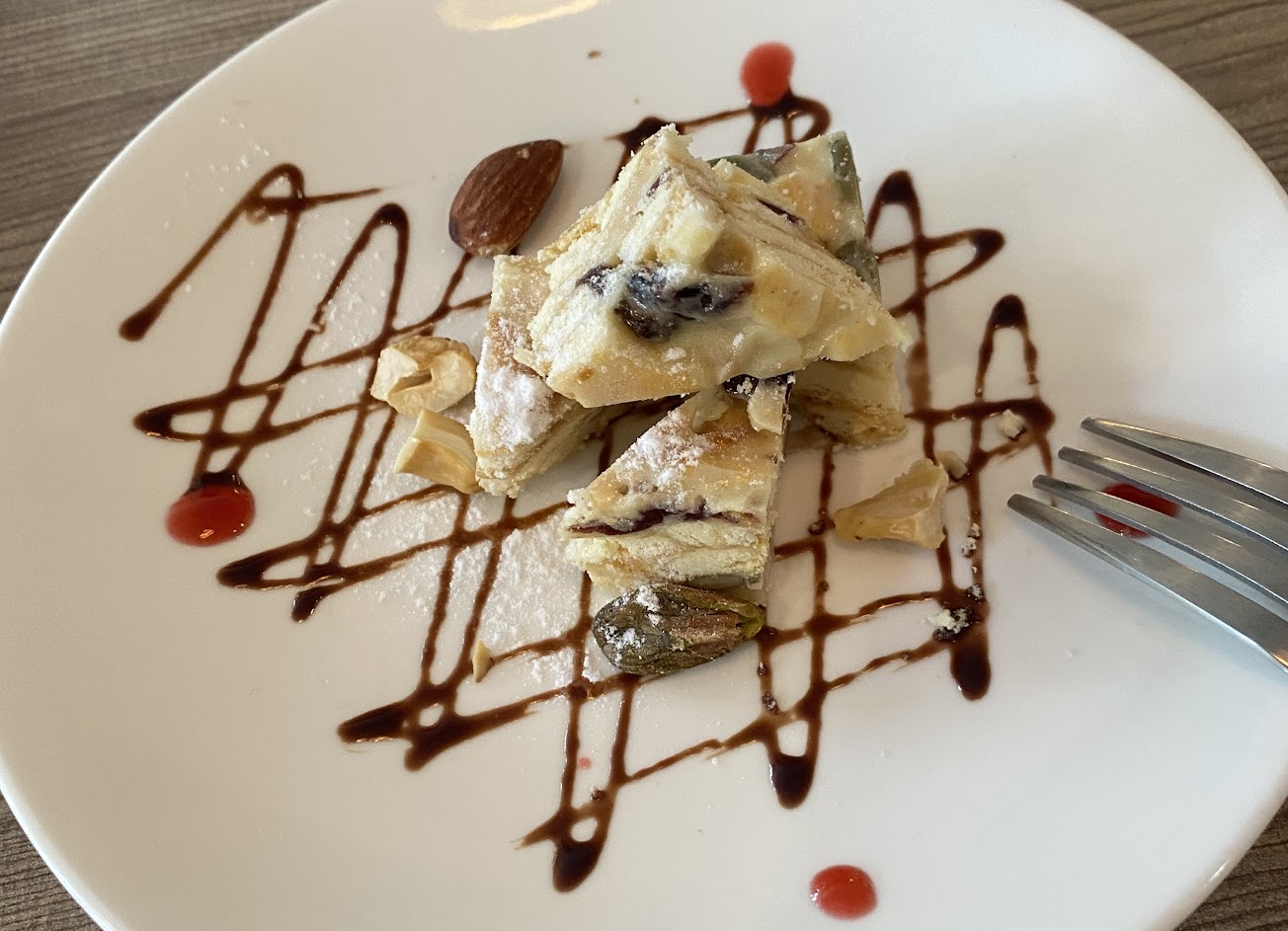 服務親切,餐點好吃,我吃到了海鮮烤飯和松露牛肝蕈燉飯,烤飯店家會細問飯的軟硬度,使用之盛盤器皿也深得我心,尤其蛋糕盤飾,一端上桌令人眼睛為之一亮,今日和許久不見得好友約在此處,話匣子一開真的停不下來,就這麼邊吃邊聊,一不留神便超過午餐時段,店家好心的沒清場,讓我們繼續暢所欲言~