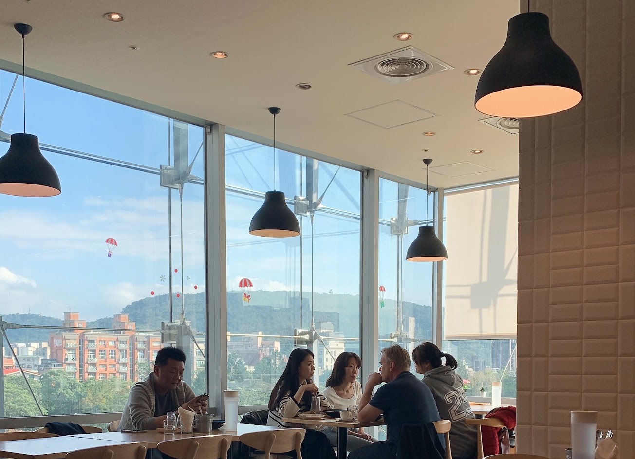 看出去的視野很好 讓人心情愉悅 但下午時段幾乎客滿時 大家聊天的聲音也沒有特別大 不知道是空間設計哪邊出了問題,有一種聲音出不去的感覺 要跟同桌朋友聊天變得很吃力…