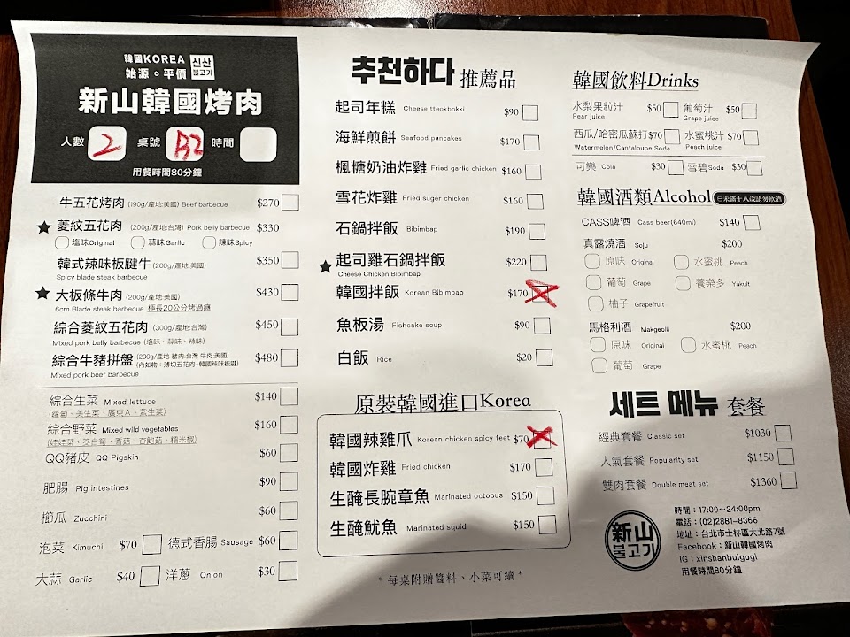 烤肉很好吃!點了經典套餐加燒啤,份量很足很划算,五花肉、海鮮煎餅必點,中間老闆和店員都有過來關切和幫烤,老闆很熱情 感覺的到對店裡&服務的用心 值得一吃!