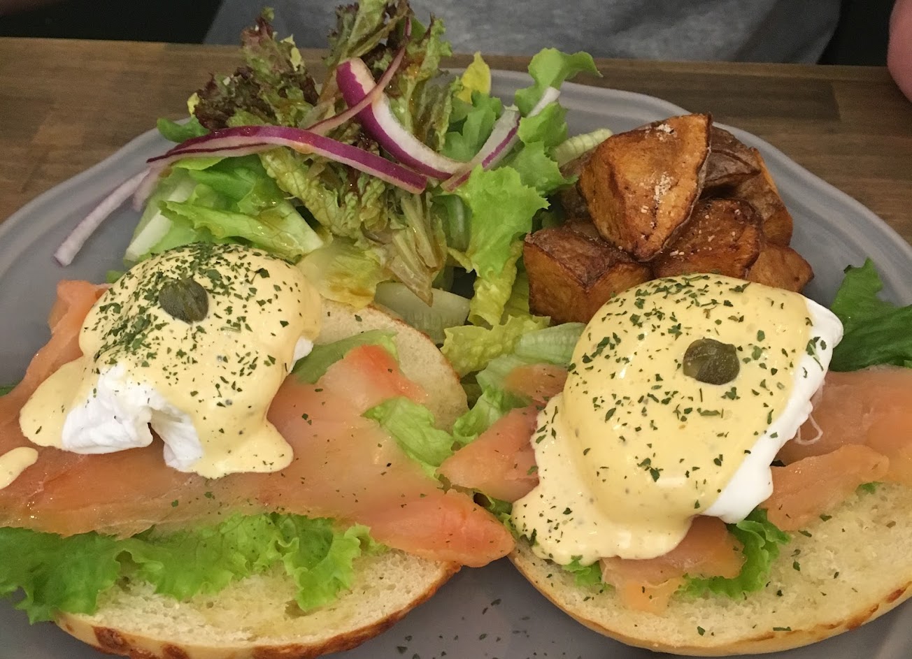 燻鮭魚班尼迪克蛋培果 培果烤不夠酥脆
