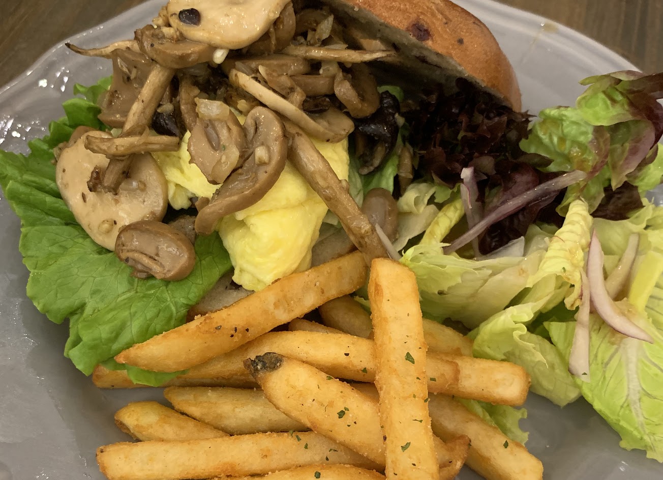 這次點燻鮭魚班尼迪克蛋跟菌菇歐姆蛋貝果