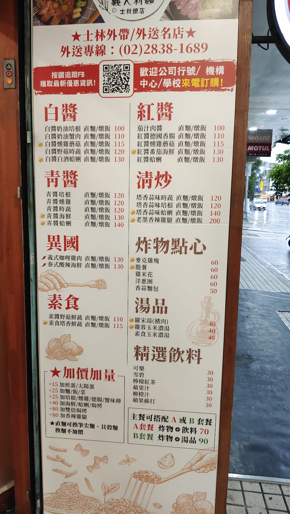 100多元的義大利麵,有加70和加90,飲料和點心,或是湯和點心