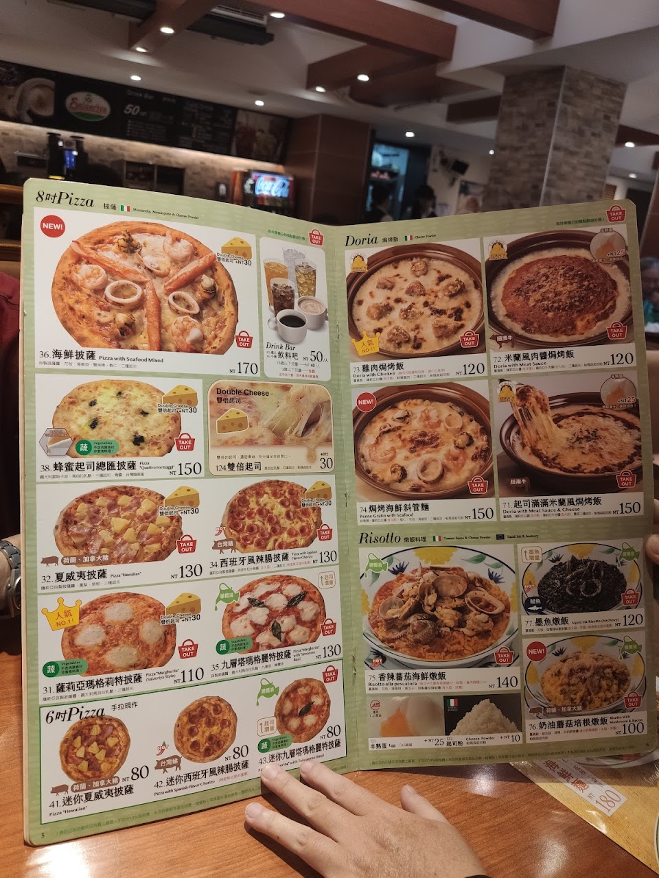 很多日本家庭來,薩莉亞的披薩是有點接近麵包口感柔軟的佛卡夏,雖不是薄脆型披薩,但也不是厚皮披薩,比較不油膩,厚切牛排200元,真的很厚,吃不太出來是組合肉的組合肉,新增的沙朗,肉質都偏瘦,瑪格麗特披薩跟起士披薩很好吃,餐點都不到100元,這麼平價的連鎖餐廳真的不多了