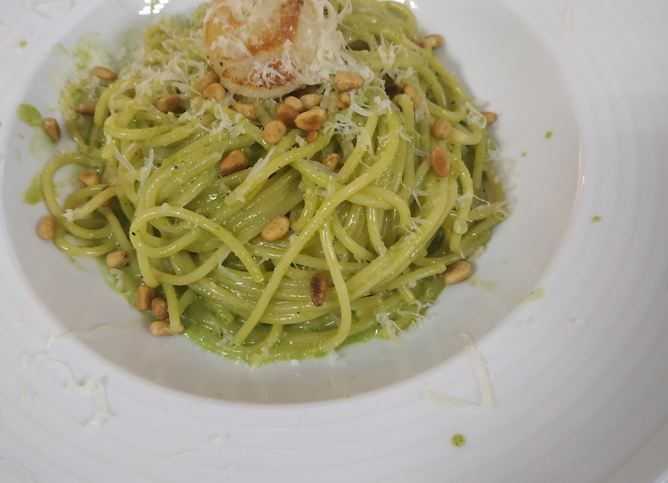 口味相當不錯 用料相當實在 都是一些比較高價位原料 像是松子、真正的馬自瑞拉起司、帕瑪森起司 不是什麼合成起司 還有芝麻葉之類在比較高價的義大利餐廳才會看到的食材 但價格相當實在 比同水準餐廳少一兩百 唯一的缺點可能是青醬有點鹹然後雞胸肉有點乾又沒味道 但如果配著醬吃是剛好 附贈的玉米湯也算不錯 沒太濃 但相當順口自然 感覺沒有加太多增添稠感的什麼化學膠或是太多奶油跟鮮奶油 溫度也保持的不錯 這間愛吃義大利麵的人應該都會覺得不錯