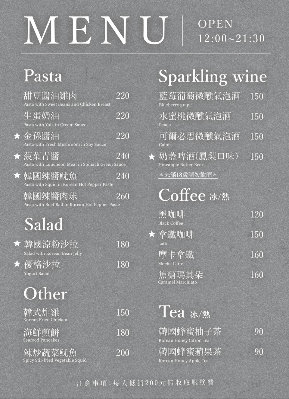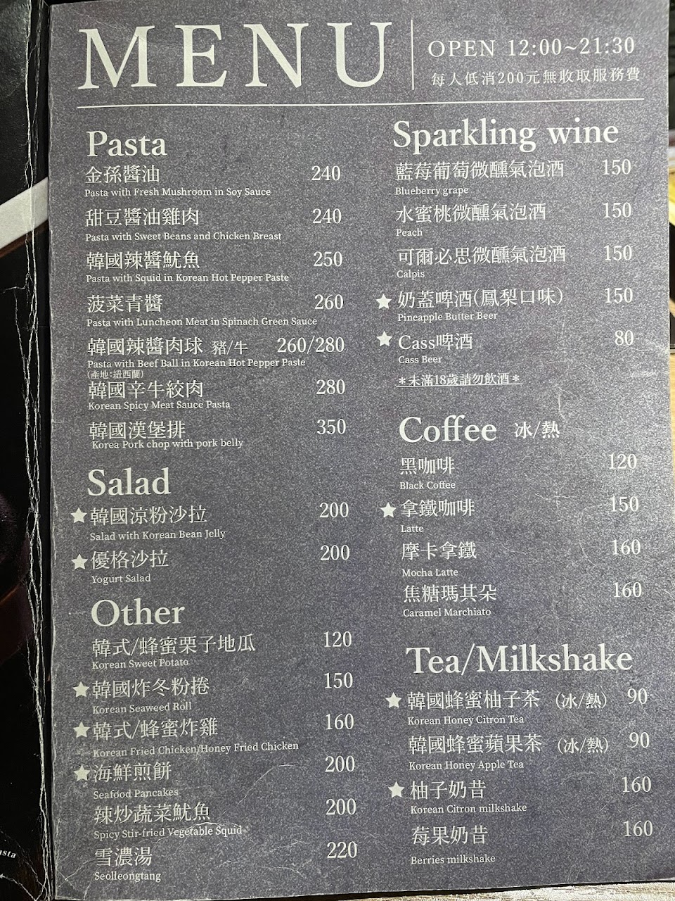 2024最新在地推薦餐廳的菜單_金孫韓廚 義大利麵 (士林)的菜單、圖片