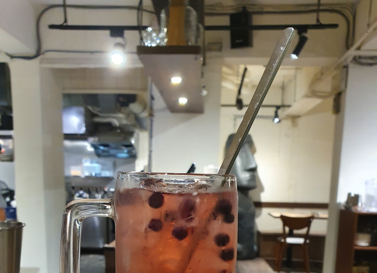 典型的亞洲醬油風味。醬汁流動性高,偏鹹,不是包覆麵體的濃稠型。乳酪絲有點微妙,感覺不出和醬油搭配的意義,麵體彈牙有嚼勁。整體來說味道不差,但過於平淡,如果添加大醬可能味道會豐富一些。或許是開放式廚房的關係,5月剛開幕,已經開始出現微微的油煙味,將來可能需要設法解決這個問題。下次想試試青醬口味。