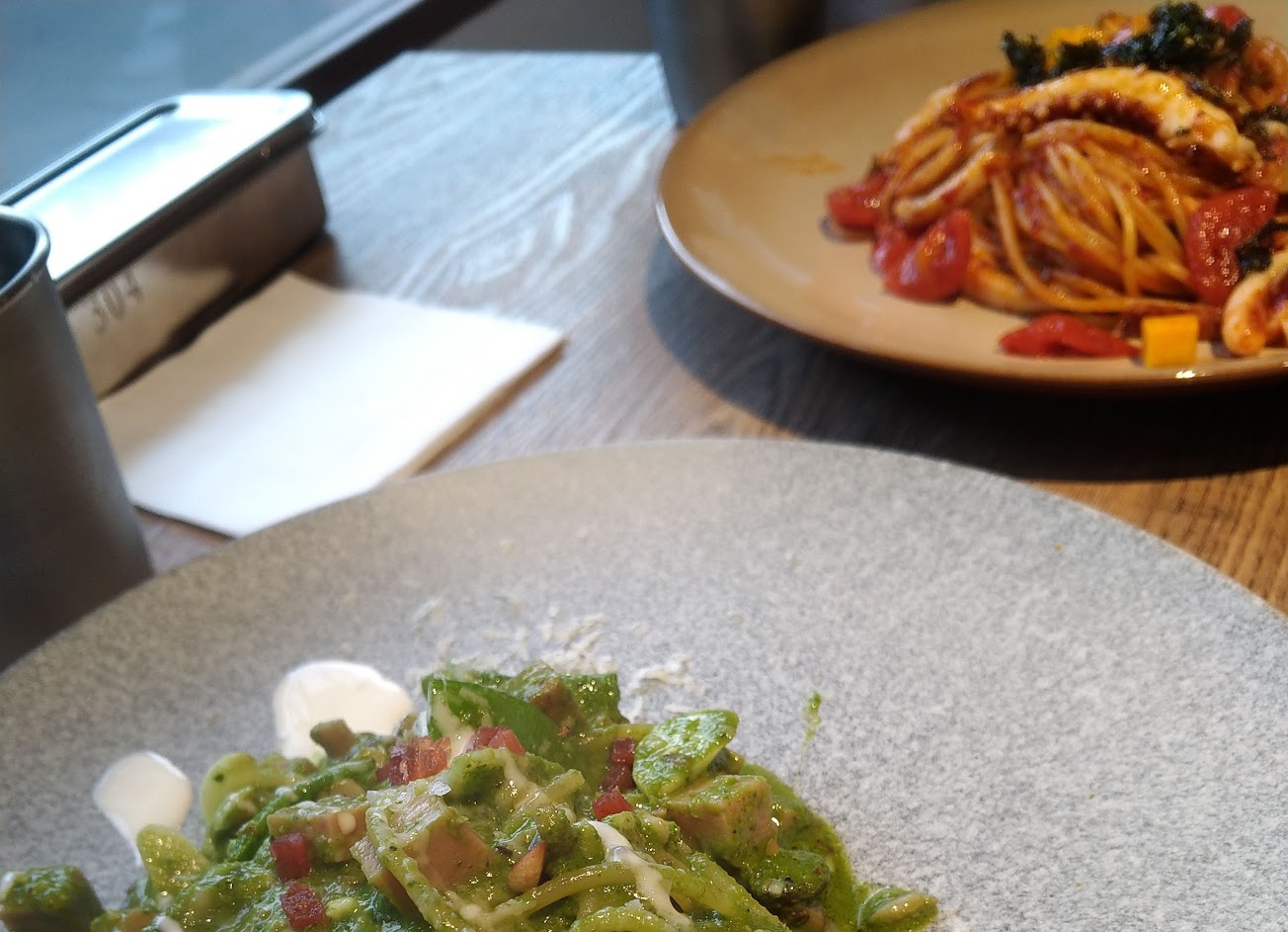 環境舒適、義大利麵的口味都很特別,平日中午也要稍微等一下(建議先打電話預約!)店員很親切又貼心,知道我們有點煎餅就另外給我們小盤子、看到我們感覺在找東西也會主動上前關心!