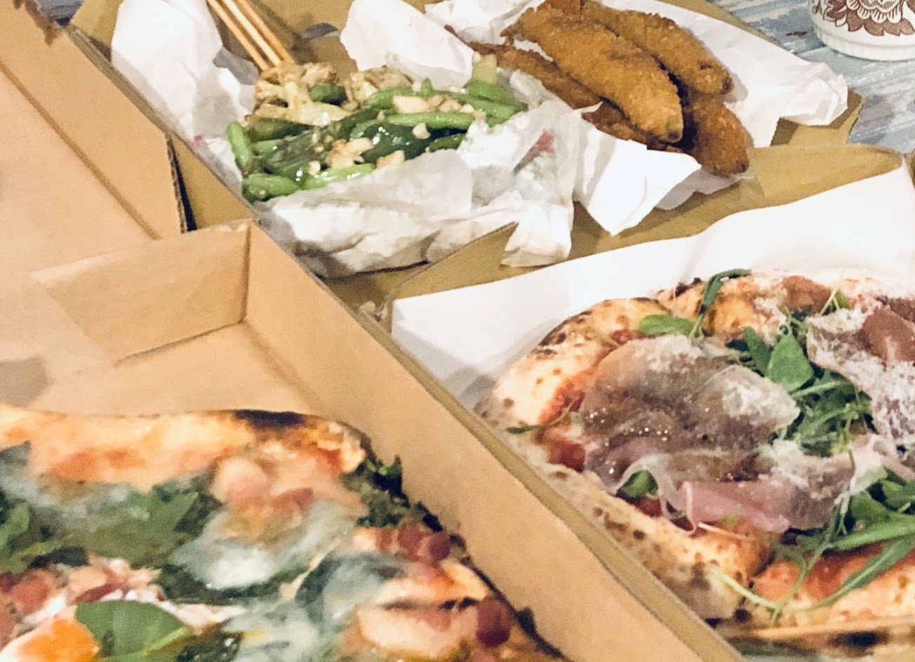 外帶兩個pizza當週末party小食。 帕瑪火腿芝麻葉的厚片pizza很棒。冷掉依然好吃。