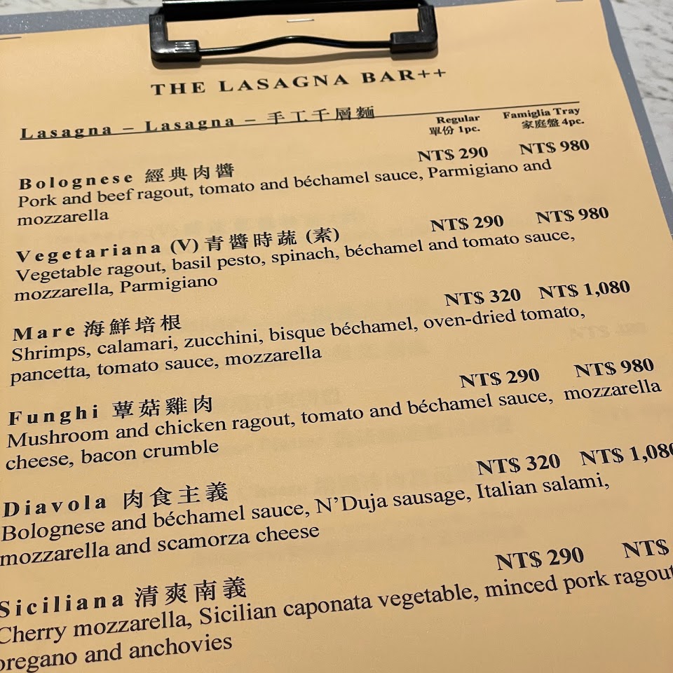 2024最新在地推薦餐廳的菜單_The Lasagna Bar 千層吧(天母店)的菜單、圖片