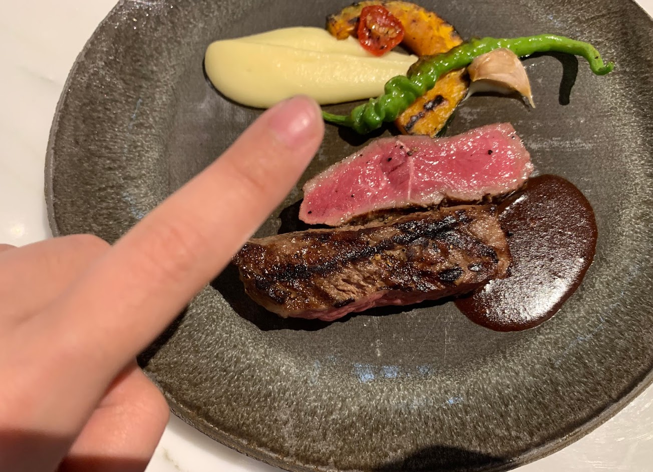 但主餐的牛排以一個五星飯店的餐廳來說完全不及格,調味不足而且難以咀嚼入口