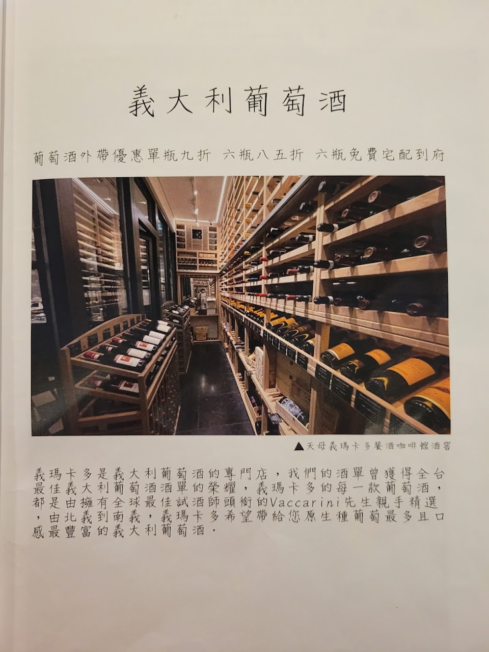 價格算實在 菜色豐富 也有午間套餐可供選擇 除了非常多的紅白酒可以挑 也有一些比較傳統的義大利餐後酒 酒水價格平實 甜點表現也不錯
