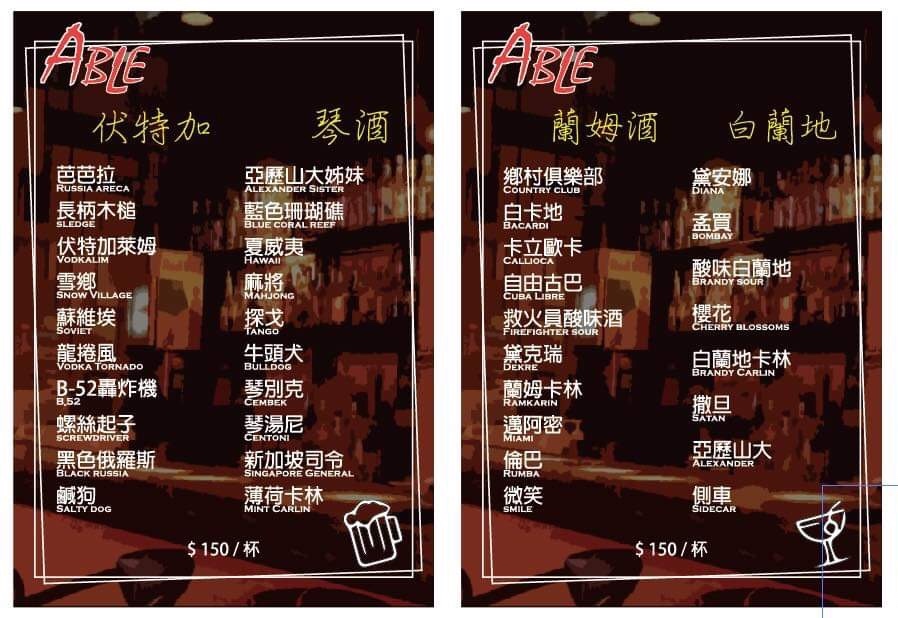 2024最新在地推薦餐廳的菜單_ABLE音樂坊茶酒館的菜單、圖片