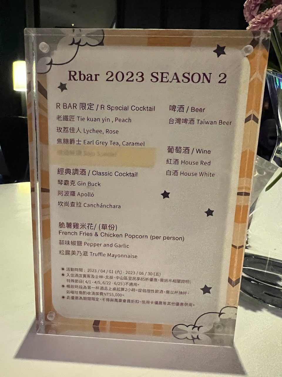 第一次來到r bar暢飲 剛好來的換酒單的前夕