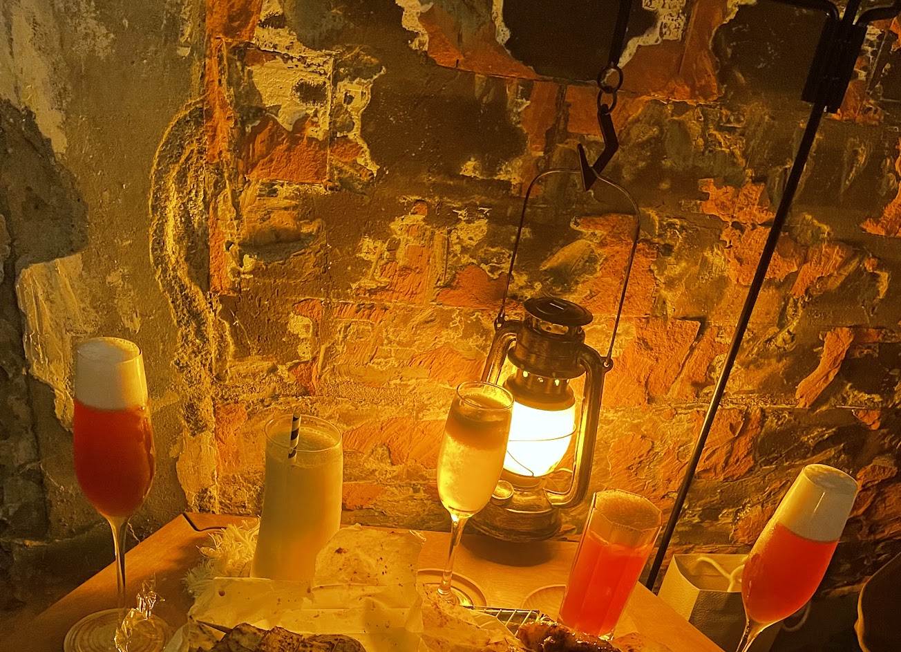 整個場地是用營火帳篷為主題的地方 進去後臨場感非常強 因為不管是從地板到照明工具都採用露營式的設備 酒類中規中矩 可能我自己沒喝到合適的類型 裡面非常的暗 真的會給人一種仰望星空的感覺