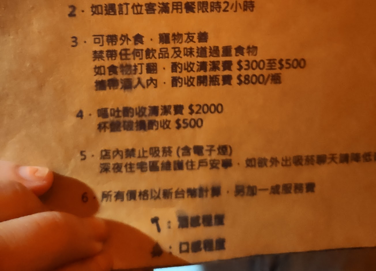 如果是包廂會有低消$3000,但卻都只有賣酒,沒有賣食物⋯ 雖然可以帶外食,但用餐時間只有2小時相對感覺很趕,畢竟來酒吧就是來享受放鬆的,然後真的只有拍照好看而已,因為座位真的很難坐啊⋯⋯