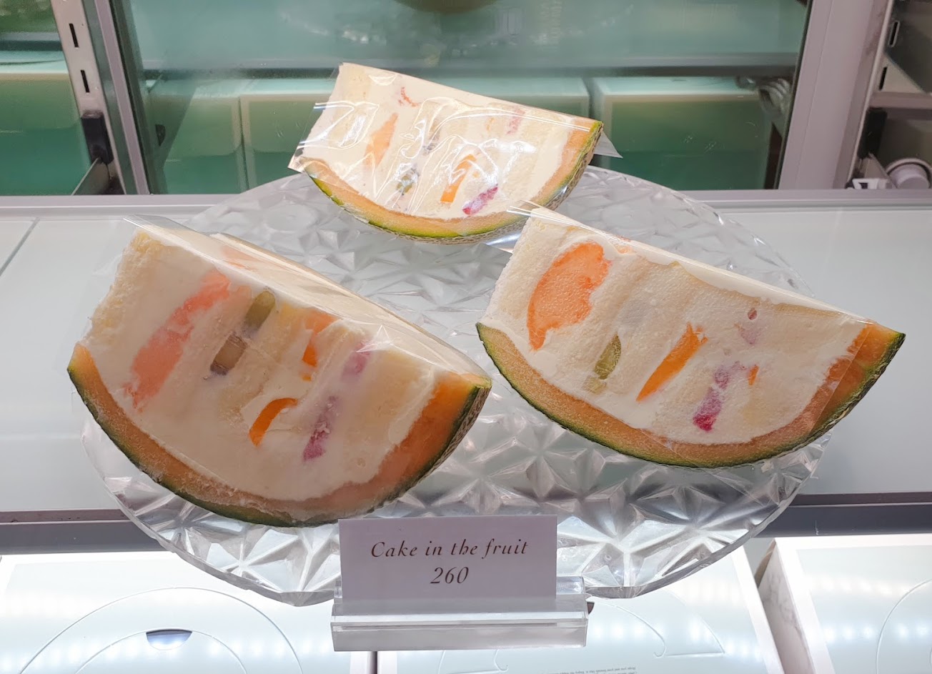 哈密瓜蛋糕視覺上的效果比實際味道更好,味道沒有很多層次,即使水果放很多種。