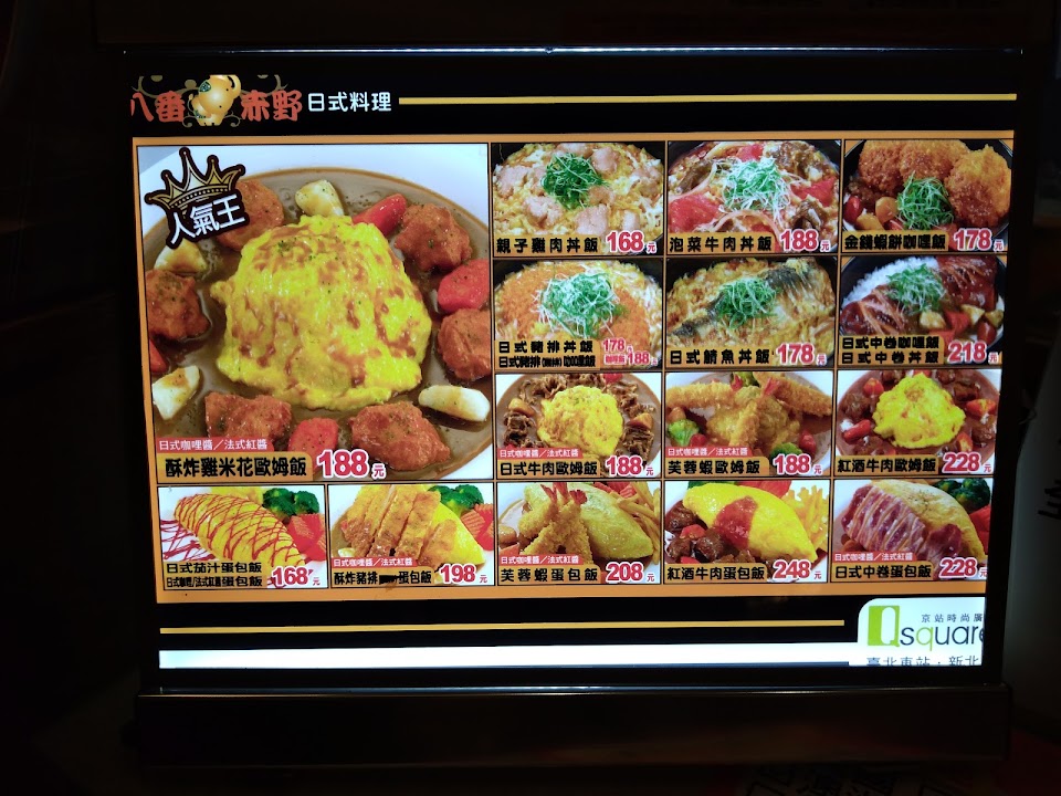 北車二樓的美食街,風格種類繁多,八番是走日式炸物類型的簡餐,餐點都是現點現做,不過等待是值得的,蛋包飯、咖哩、炸豬排都相當到位,升級套餐的炸豆腐也是可圈可點!