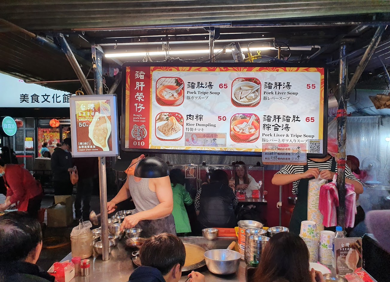 豬肝豬肚綜合湯65元。店裡就是賣豬肝湯而已,很厲害!豬肝很特別不是薄片,他是有厚度的,但又非常嫩,且沒內臟腥臭味,料理的很好❤豬肚我個人比較不吃,但喜歡吃的人說這家也不錯哦 老闆態度很和藹,面對滿滿排隊源源不絕的客人還能和藹講話,我真心佩服? 外帶在攤子前排隊、內用在攤子後排隊。 寧夏夜市大多店家都有line pay 零接觸付款很讚
