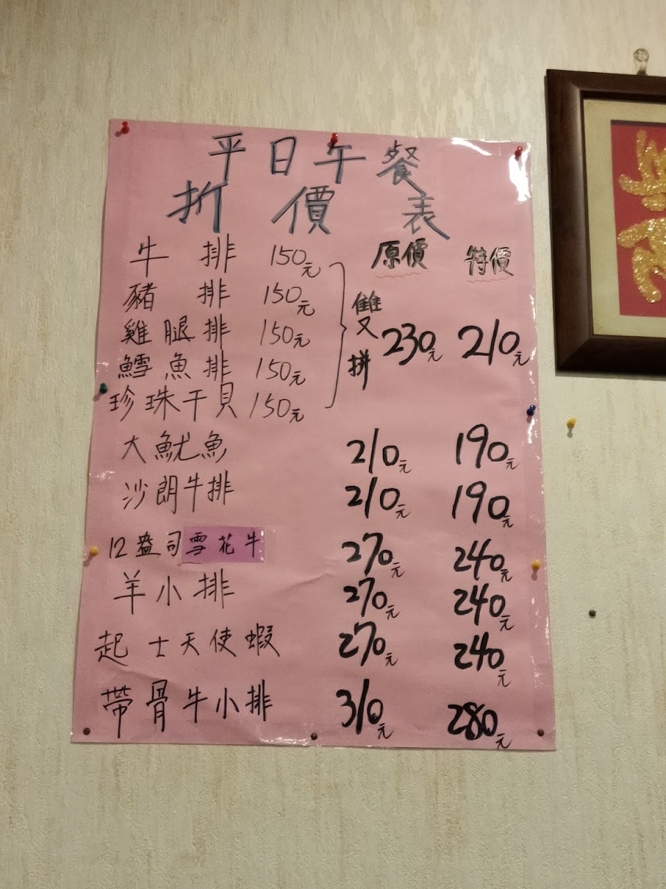 超級平價的牛排,算是常客,因為老闆及老板娘跟工讀生人都很好很親切,當然品質不能跟4、5千的比較,但親切的服務卻是超過高價位的店。
