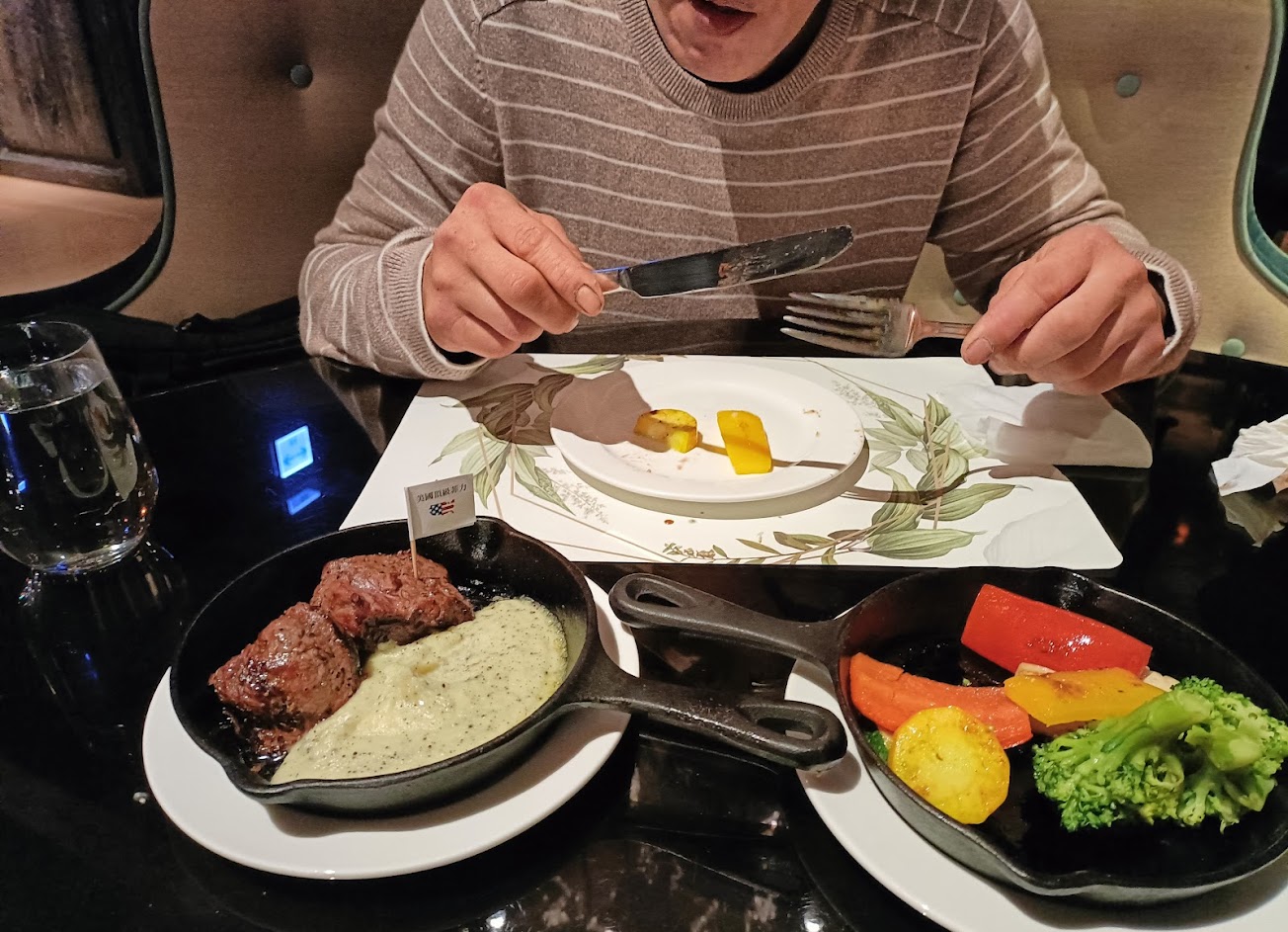 這次買線上旅卷一泊二食附晚餐15oz牛排,來餐廳後接待人員是很貼心,但一坐下也沒有特別說明我今天天的餐點有包含什麼,是否可以單點其他餐點