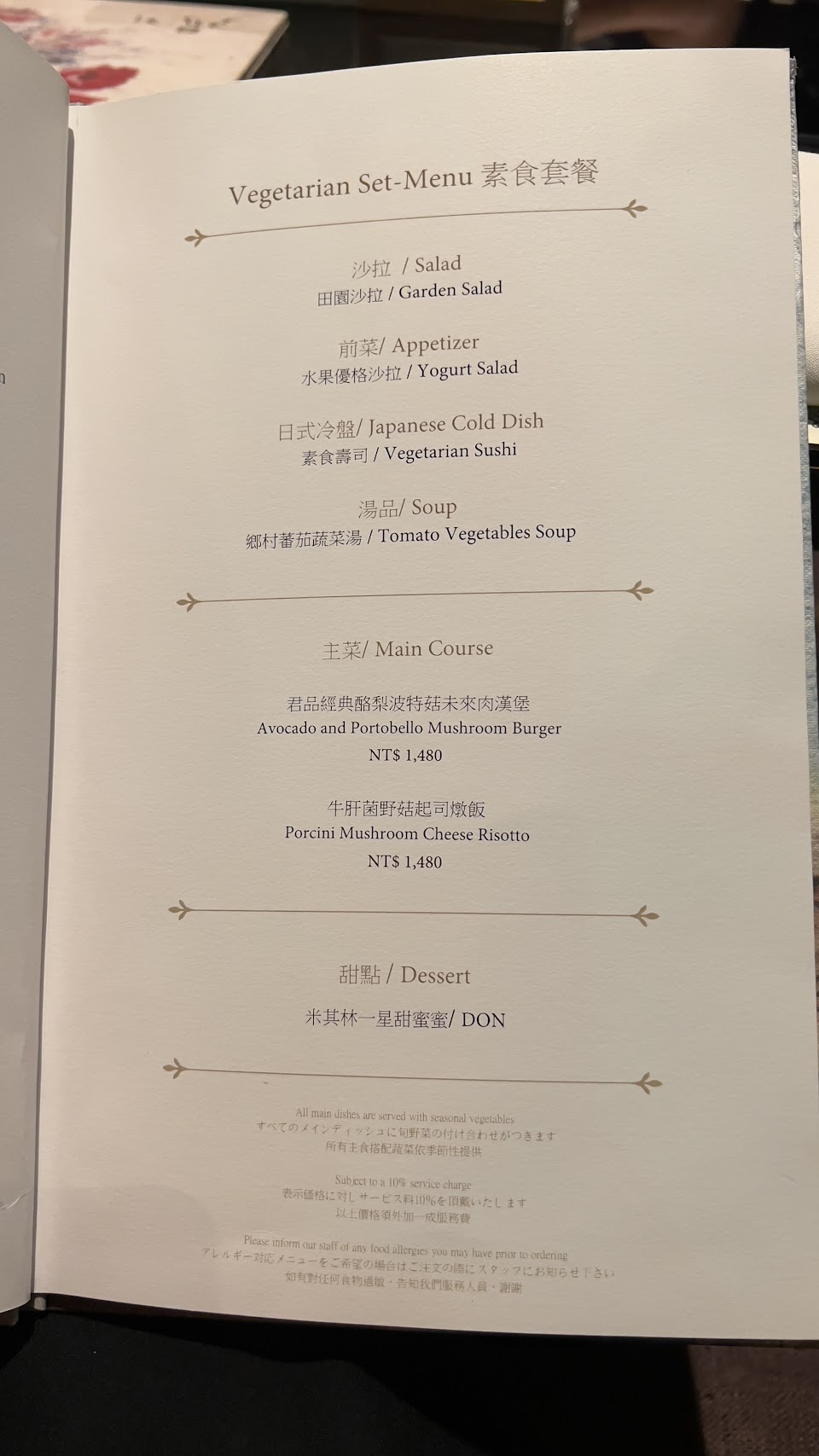 用餐很愉快,CP值很高,感謝工作人員Sunny 翁語晴,服務很好! 服務 內用 餐點類型 晚餐 平均每人消費金額 $1,600-1,800 餐點:5 服務:5 氣氛:5 素食餐點 味道可以再重一些?