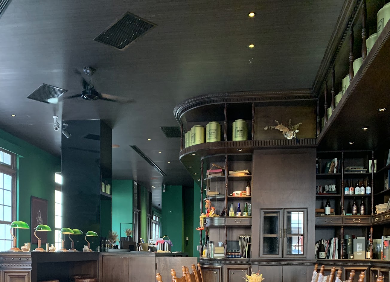 這間在大稻埕開了多年的英式茶館,覺得是氣氛優於餐飲本身,空間雖不算大但綠色調搭配得很好,加上窗景和復古燈具、吧檯帶出品味,但餐點口味還是有些可惜,而且價格略偏高。