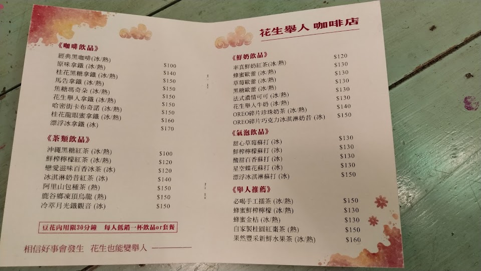 很棒的用餐體驗,店內外的佈置可以看出店家的用心,店裡充滿濃濃的在地氛圍,老闆和老闆娘人都很好,很熱心地介紹了店裡的各樣古物和其故事,店家也有提供在地導覽的部分,對深度旅遊有興趣的朋友可以詢問看看,餐點部分花生舉人拿鐵很值得嘗試豆花也還不錯,最後現值疫情期間有些餐點停止供應,來訪前可以先上店家臉書粉專詢問,附圖為花生舉人拿鐵($150)、綜合豆花($55),想看更多店家介紹>IG: jimmy26208