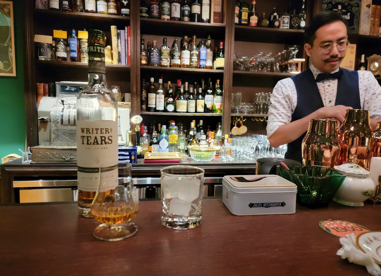店裡主打各種艾碧斯跟愛爾蘭威士忌,有很多臺灣不常見的酒款。也有調酒、比利時啤酒跟咖啡。(還有很多老闆收藏的打字機可以玩)。老闆諳華語、英語和法語,帶外國朋友去也ok。