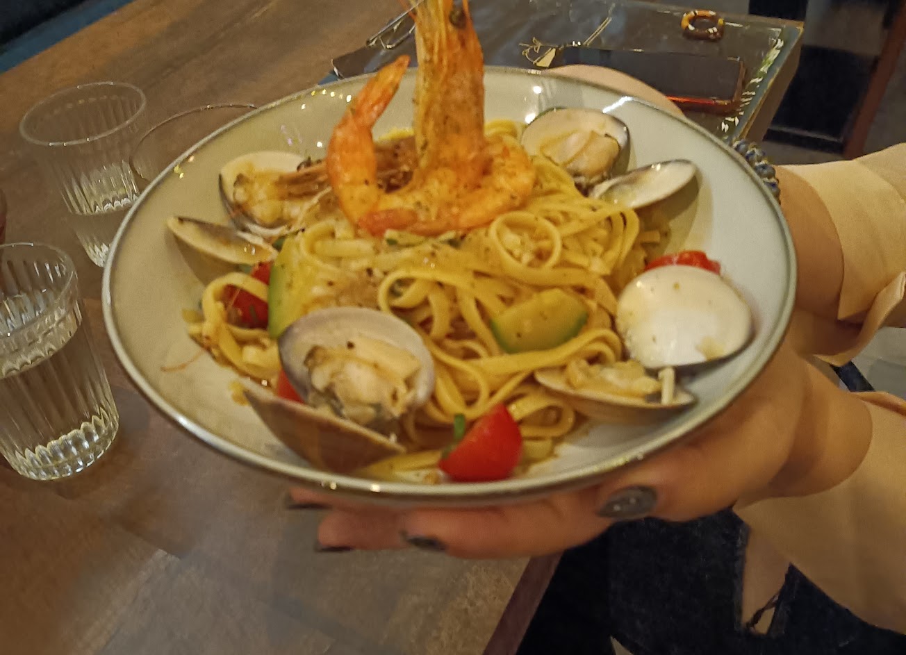 也調味很好吃,麵條屬於寬扁麵。奶油的味道很明顯但不違和,整體非常濃郁但不膩口