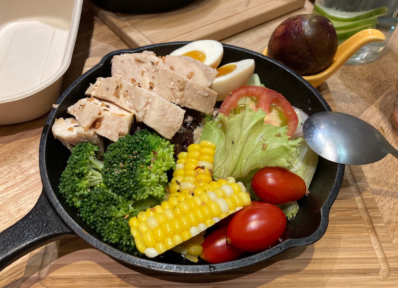 雖然餐點選擇不多,但十分美味。 軟嫩不柴的雞胸肉很不客氣的給好給滿,配菜們也都非常好吃!