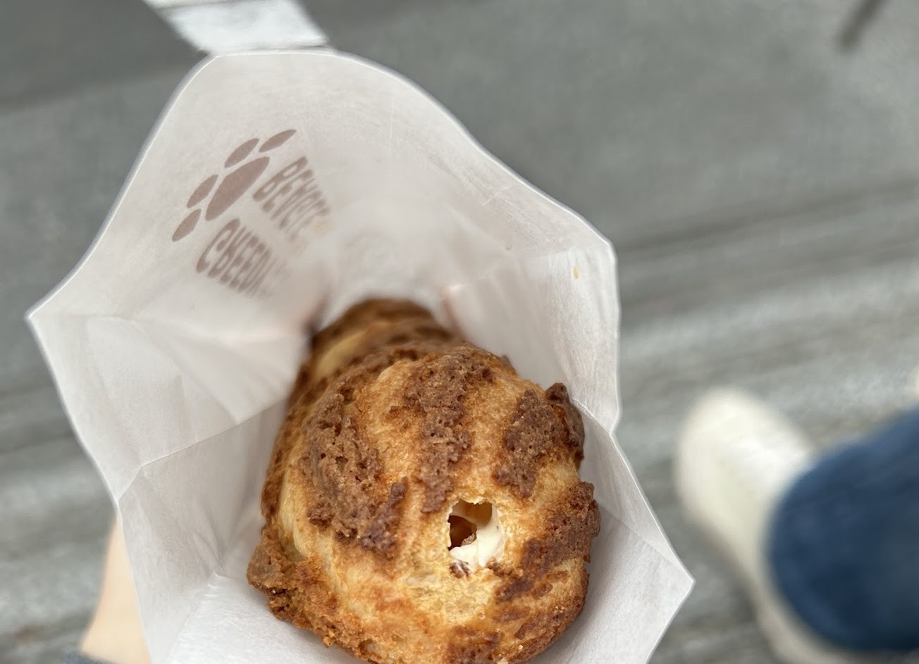 今天買北海道牛奶泡芙,泡芙外皮酥脆,咬下會掉屑的那種,內餡冰涼,不甜不膩,很好吃。
