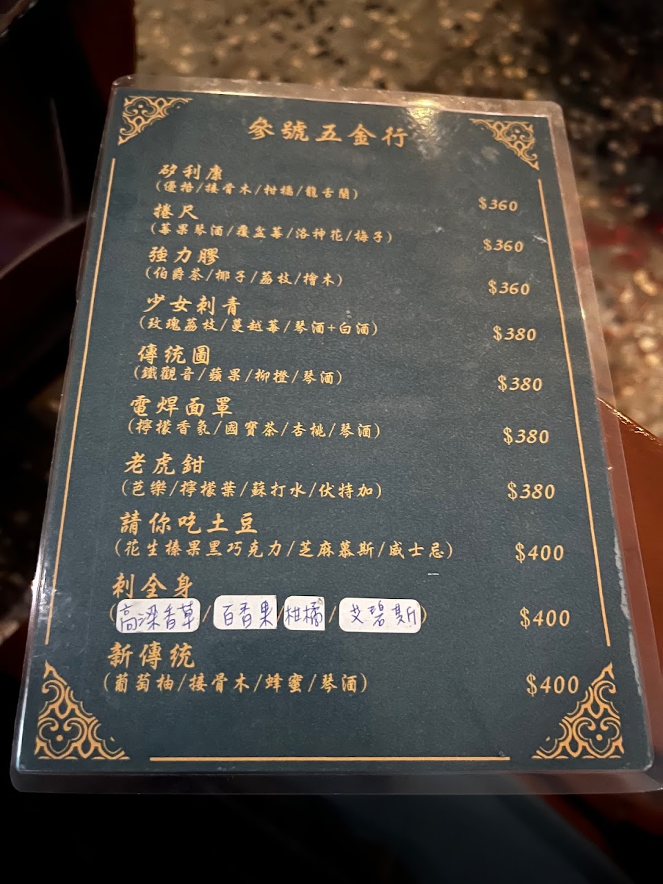 2024最新在地推薦餐廳的菜單_參號五金行-刺青酒吧的菜單、圖片