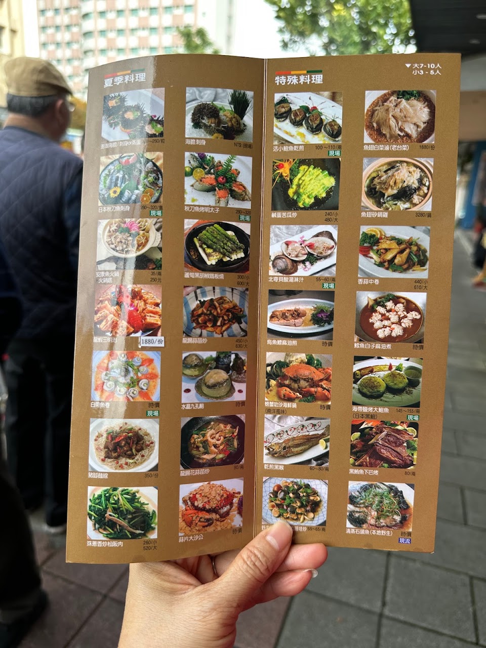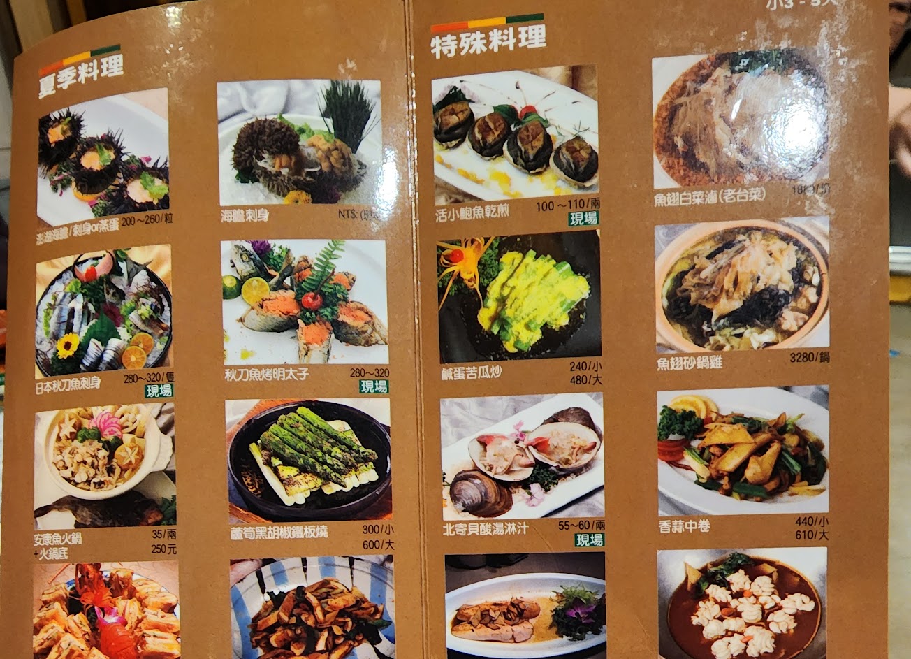 麻辣臭豆腐 白鯧魚米粉湯 綜合生魚片 九孔干貝雙味燒 清蒸石頭魚 龍蝦三明治
