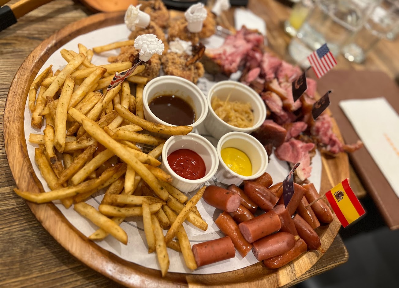 母親節到訪,座位擁擠且吵雜,服務人員顯而易見的忙碌。幾乎每桌都有點的經典大拼盤,唯一推薦這道,其它餐點乏善可陳。最令人失望是招牌的蜂蜜啤酒上桌竟然不冰!