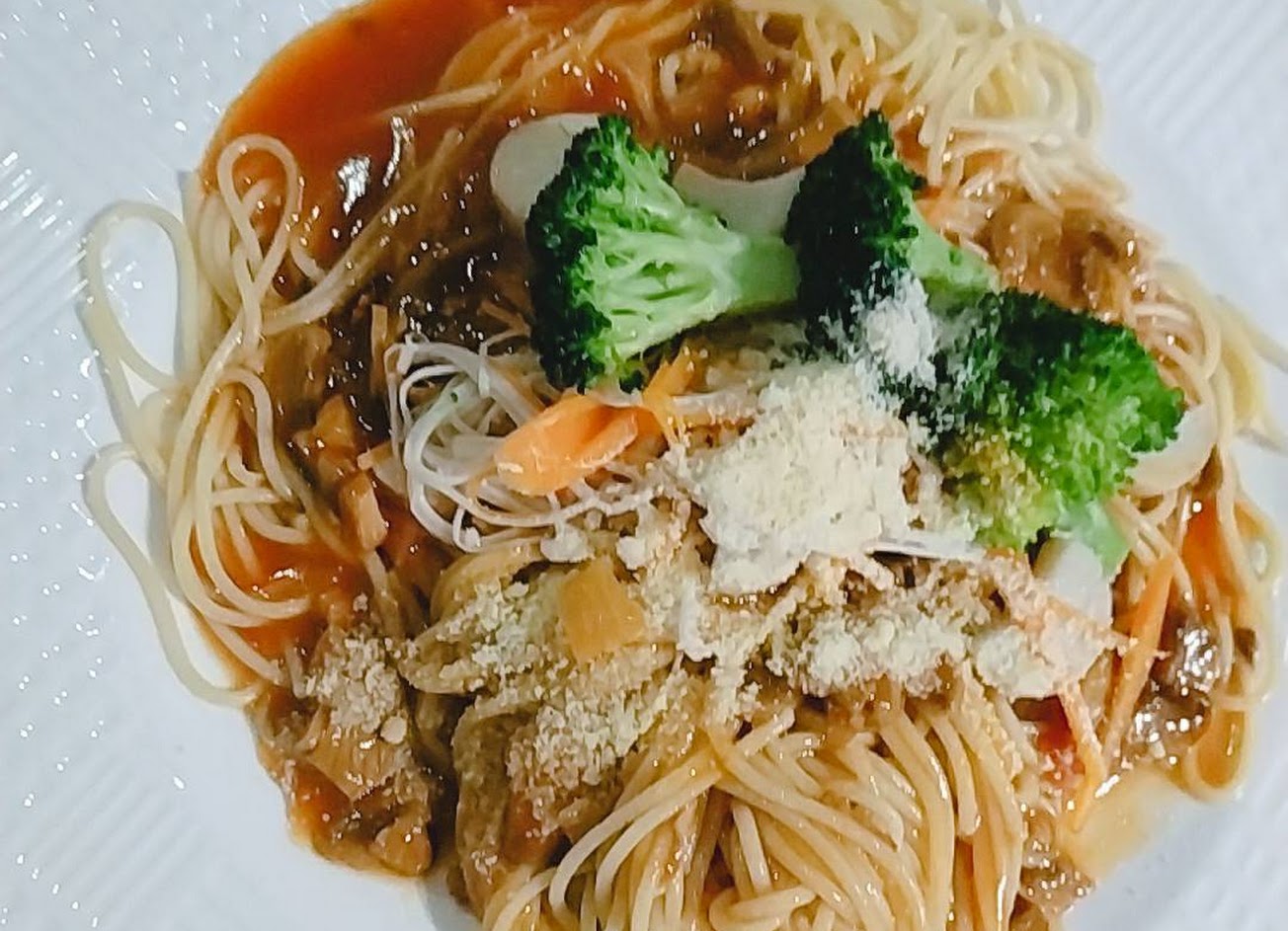 肉醬義大利麵是自己炒的肉醬,原本以為義大利麵吃到飽不期待麵有多好吃,但用料給的很有誠意?吃的到肉塊而不是絞肉,還有甜豆搭配,完全不雷!