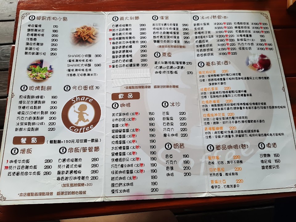 2024最新在地推薦餐廳的菜單_三芝淺水灣share cafe 分享咖啡館的菜單、圖片