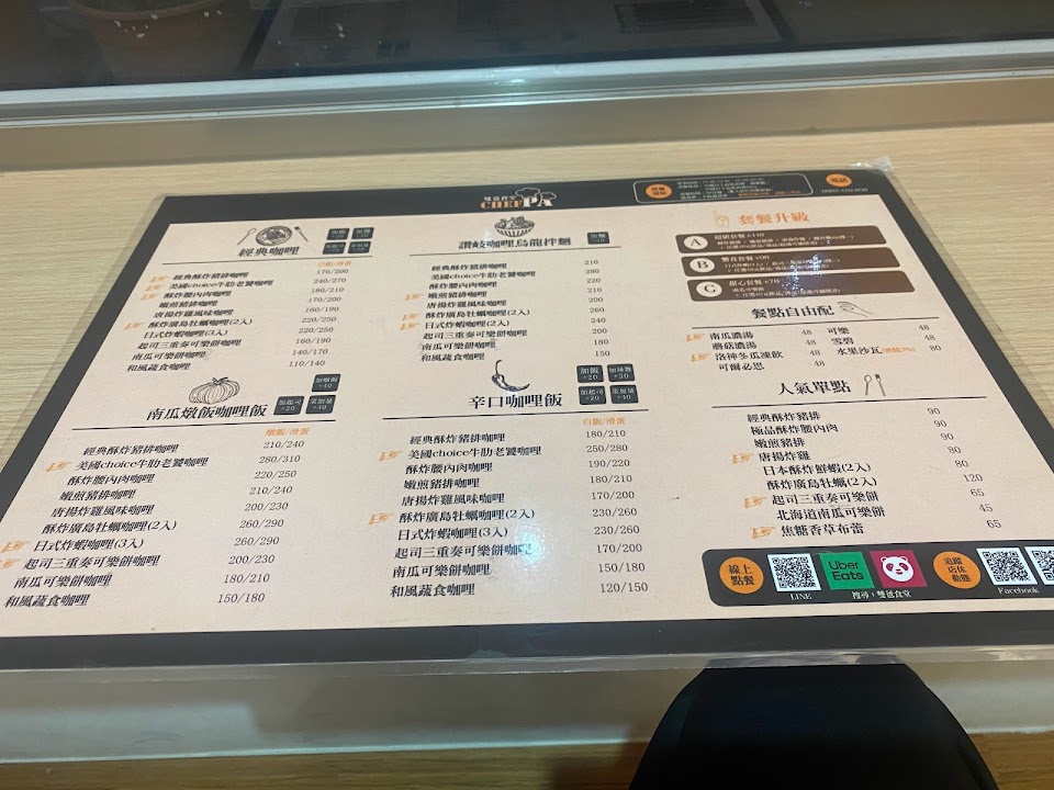今天點了經典豬排咖哩飯、唐揚雞、南瓜可樂餅、南瓜濃湯,豬排外酥內嫩超好吃,唐揚雞有種特別的氣味,不喜歡。南瓜濃湯好喝,可樂餅太甜膩也不喜歡。中午約11:40用餐12:30左右離開,內用只有一組客人(狐疑)?環境衛生不錯、食物也不錯吃啊,為何如此?單價過高嗎?