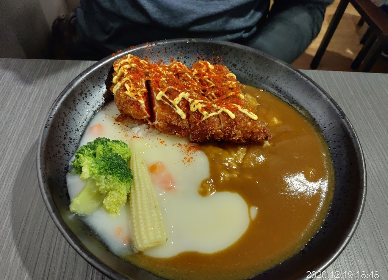 相當美味的豬排,肉厚且扎實,咬起來有時還會噴汁,讓人印象非常深刻。不光是豬排,連雞排都有多種風味可以搭配,讓人一試再試。他們的咖哩很香很濃郁,每次去都捨不得點奶油或雙醬,因為這樣咖哩就只有一半的量XD